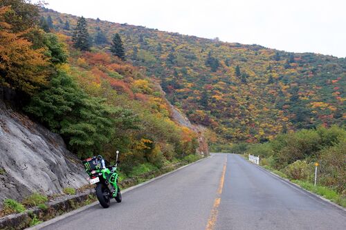 東北では紅葉がもう始まってる! という訳で、新しいチェーンとスプロケの交換・試走がてら、11月には冬季閉鎖する蔵王に行ってきた。こいついっつも蔵王行ってんな。